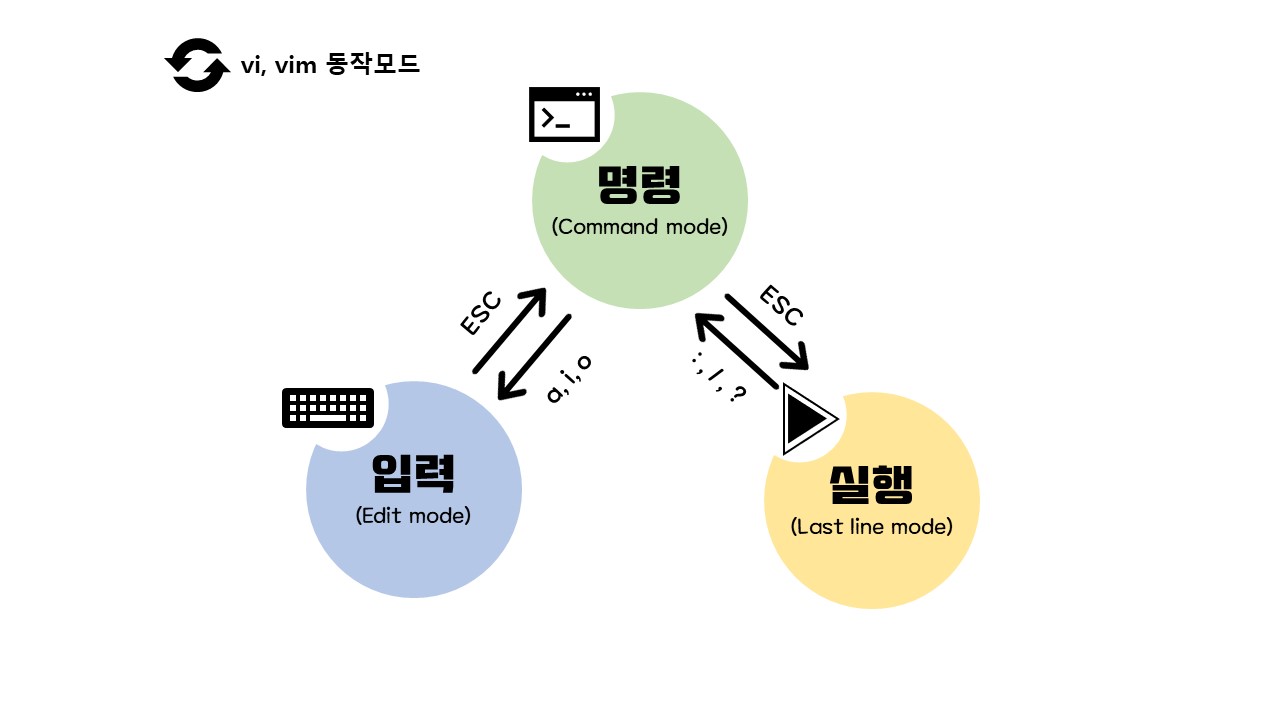 아래 사진은 vi, vim 동작 모드입니다.