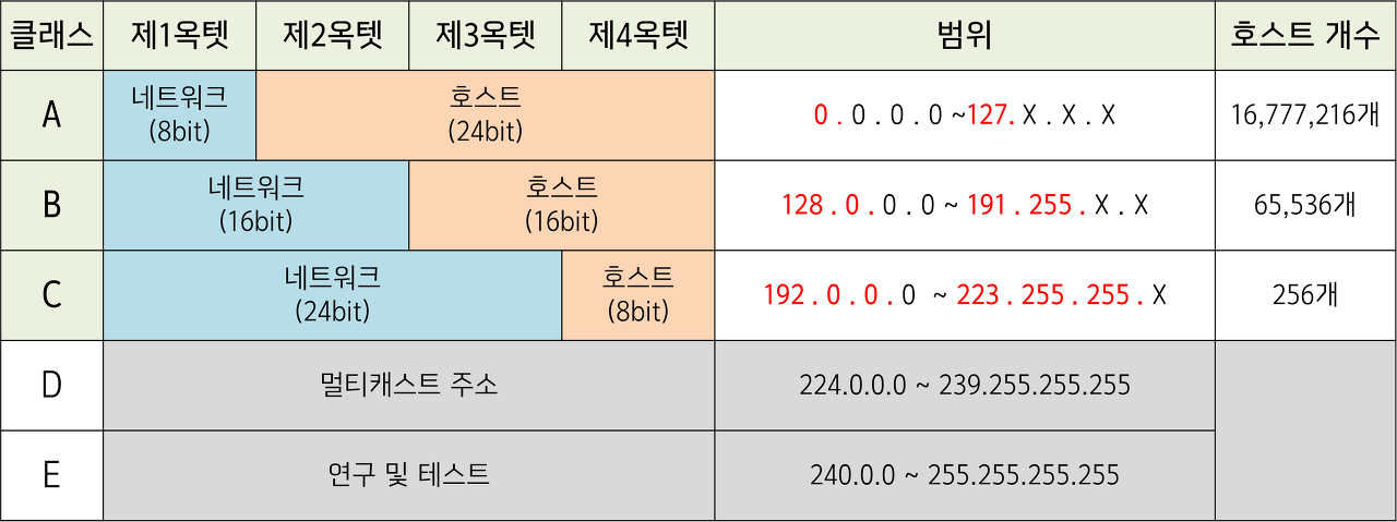 네트워크 부분 [255.255.255.] 과 호스트 부분 [224] 으로 나누어