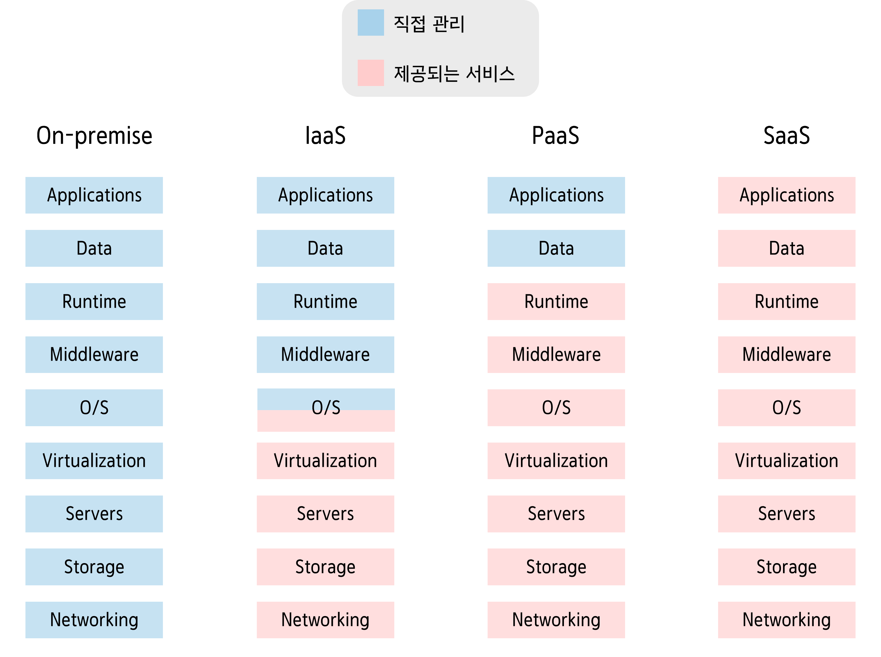 서비스 제공 범위에 따라 [ IaaS, PaaS, SaaS ]로 분류할 수 있습니다.