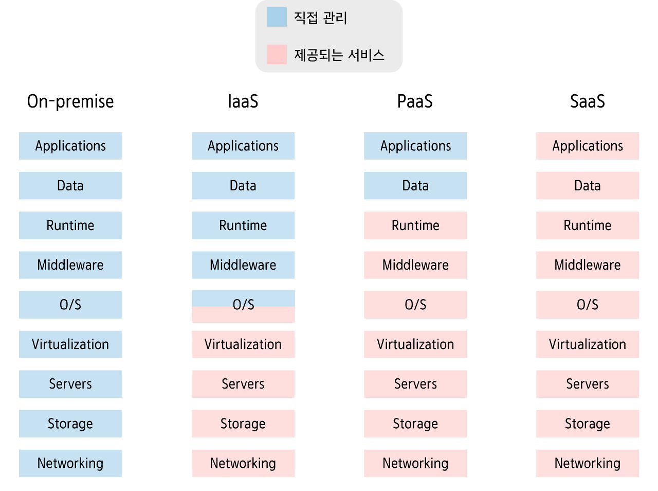 서비스 제공 범위에 따라 [ IaaS, PaaS, SaaS ]로 분류할 수 있습니다.