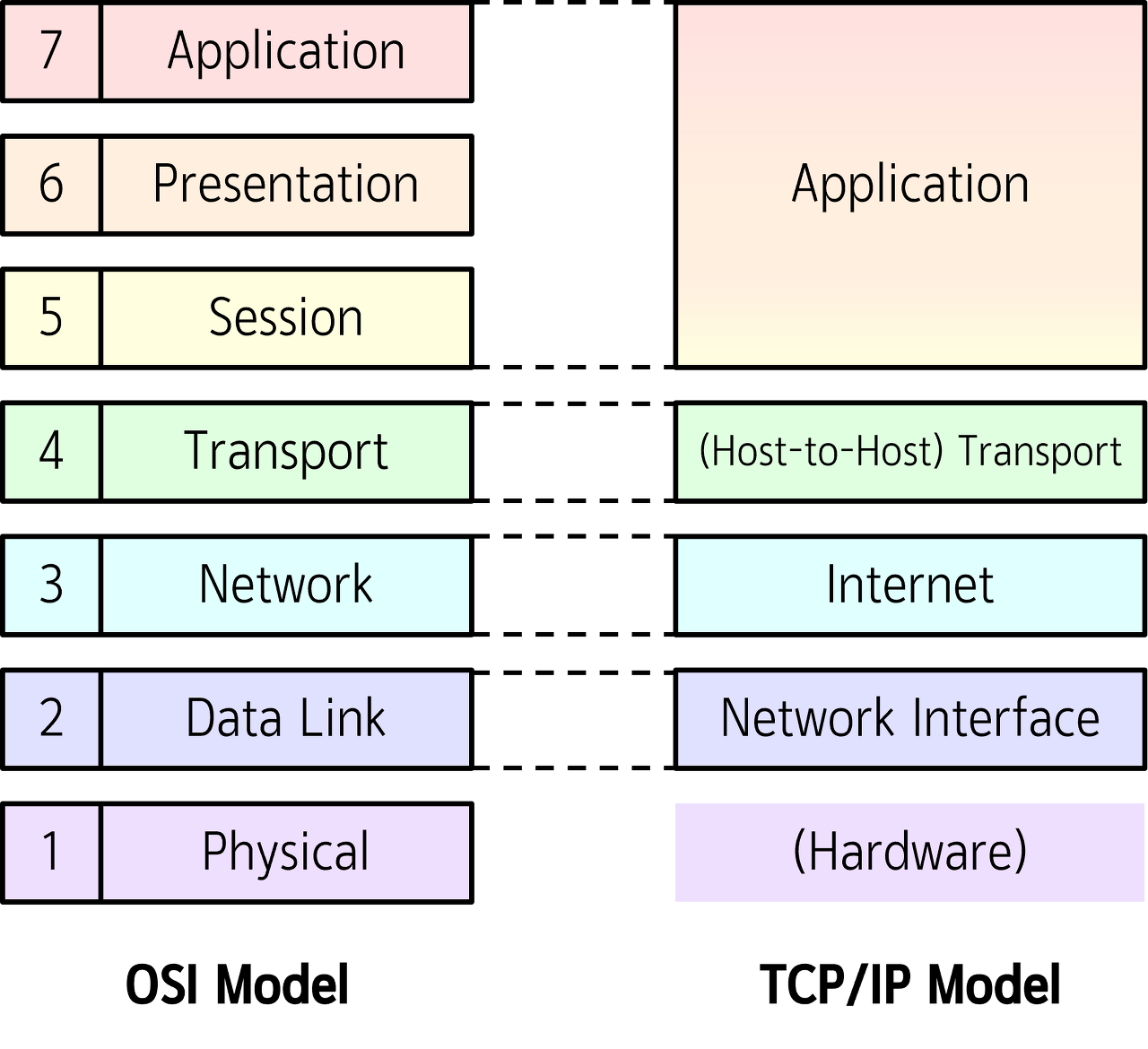 TCP/IP 프로토콜 4계층은 [Network Interface], [Internet], [Transport], [Application] 계층 순으로 구성됩니다.