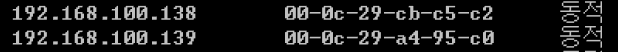 [ 00:0c:29:cb:c5:c2 ]에서 [ 00:0c:29:a4:95:c0 ]로 바뀐 것을 확인할 수 있습니다.