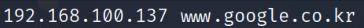 www.google.co.kr 의 DNS Query에 대해 192.168.100.137 (위조된 웹 서버)로