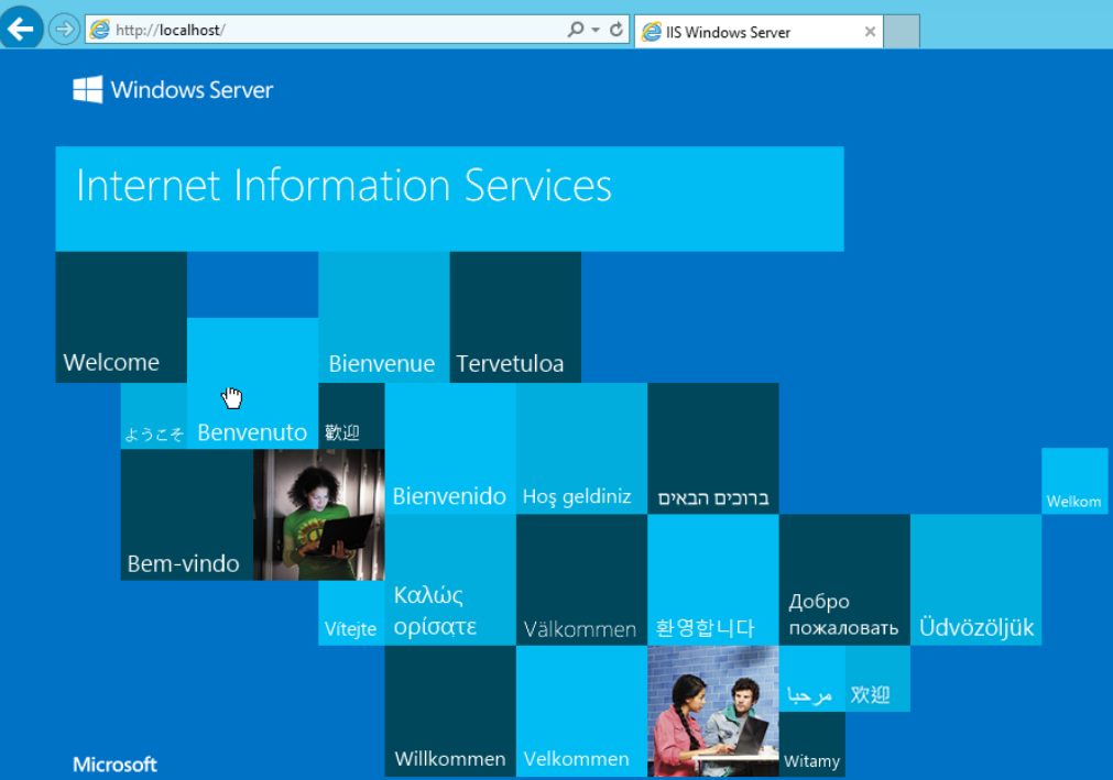 위조된 웹 서버 (Windows Server 2012)에서 localhost로 접속하여 웹 서버가 동작하는지 확인합니다.