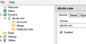 마지막으로 [Settings] => [Protocols] => [SMTP] => [Delivery of e-mail]에서 SMTP 서버의 이름을 등록합니다.