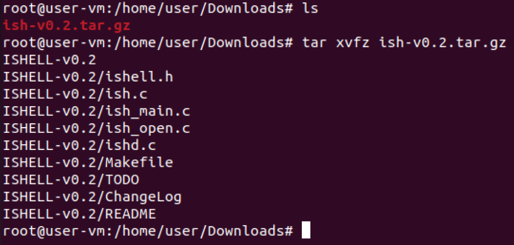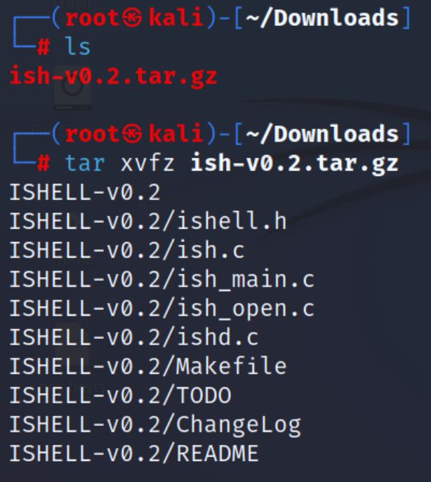 ish-v0.2.tar.gz 파일의 압축을 풀면 ISHELL-v0.2 디렉터리가 생성됩니다.