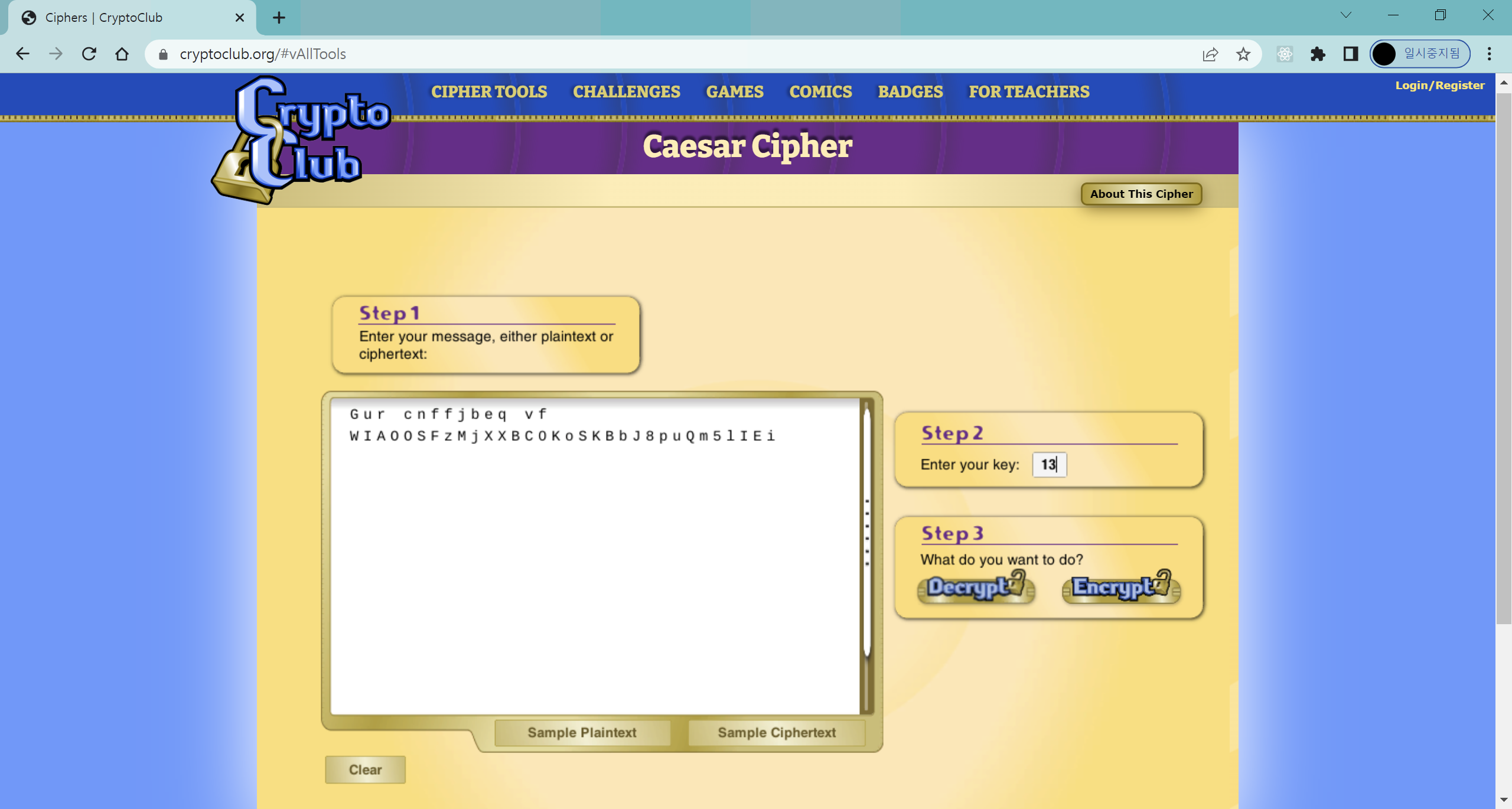 시저 암호(카이사르 암호)라는 것은 확인했지만,