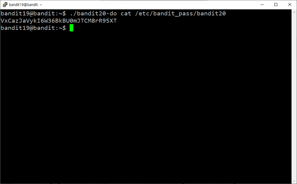 cat 명령으로 /etc/bandit_pass/bandit20 파일의 내용을 확인하겠습니다.