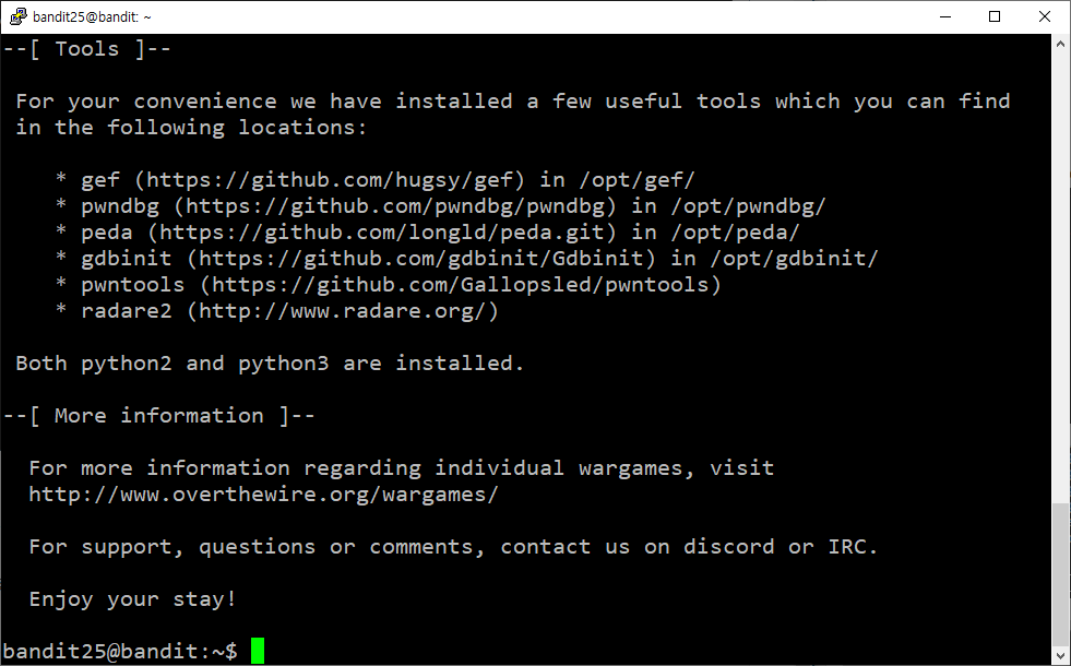 | OverTheWire_Level 25 -> Level 26 (0) | 2023.01.28 |