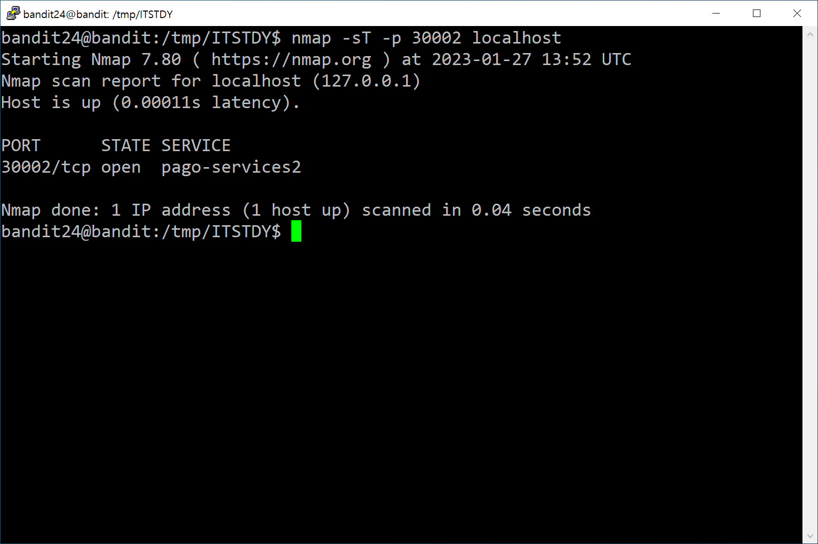 해당 포트에 bandit24의 비밀번호와 4자리의 핀을 입력해야 하지만,