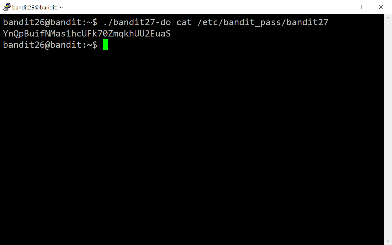 [ ./bandit27-do 명령어 ] 형식으로 파일을 실행하면 bandit26이 아닌,