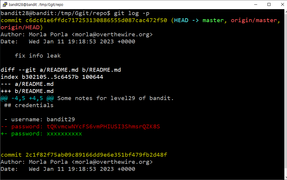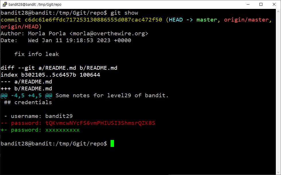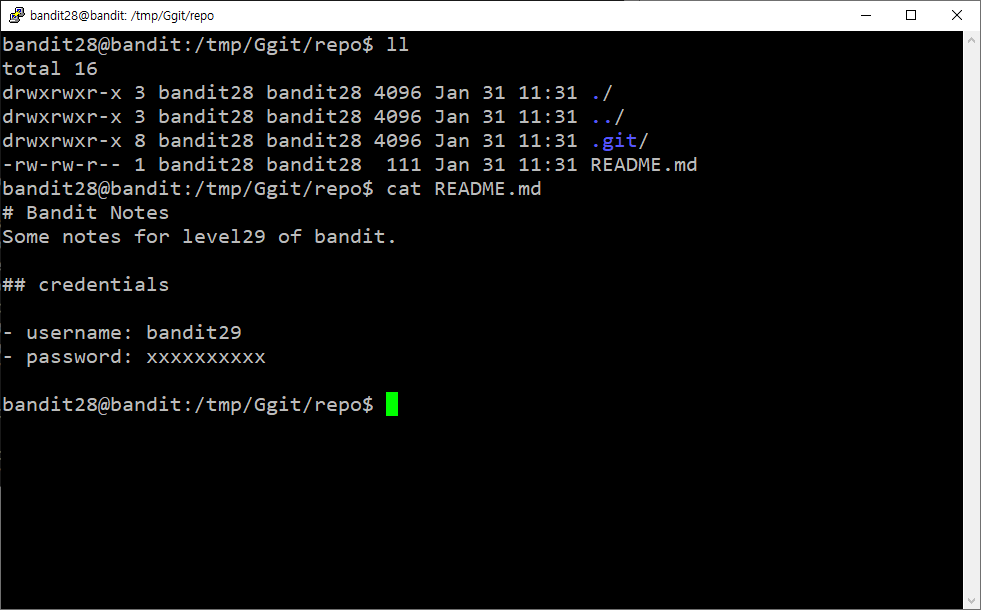 | OverTheWire_Level 27 -> Level 28 (0) | 2023.01.30 |