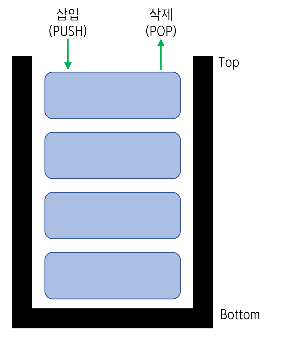 스택(Stack)은 LIFO 방식으로 처리됩니다.