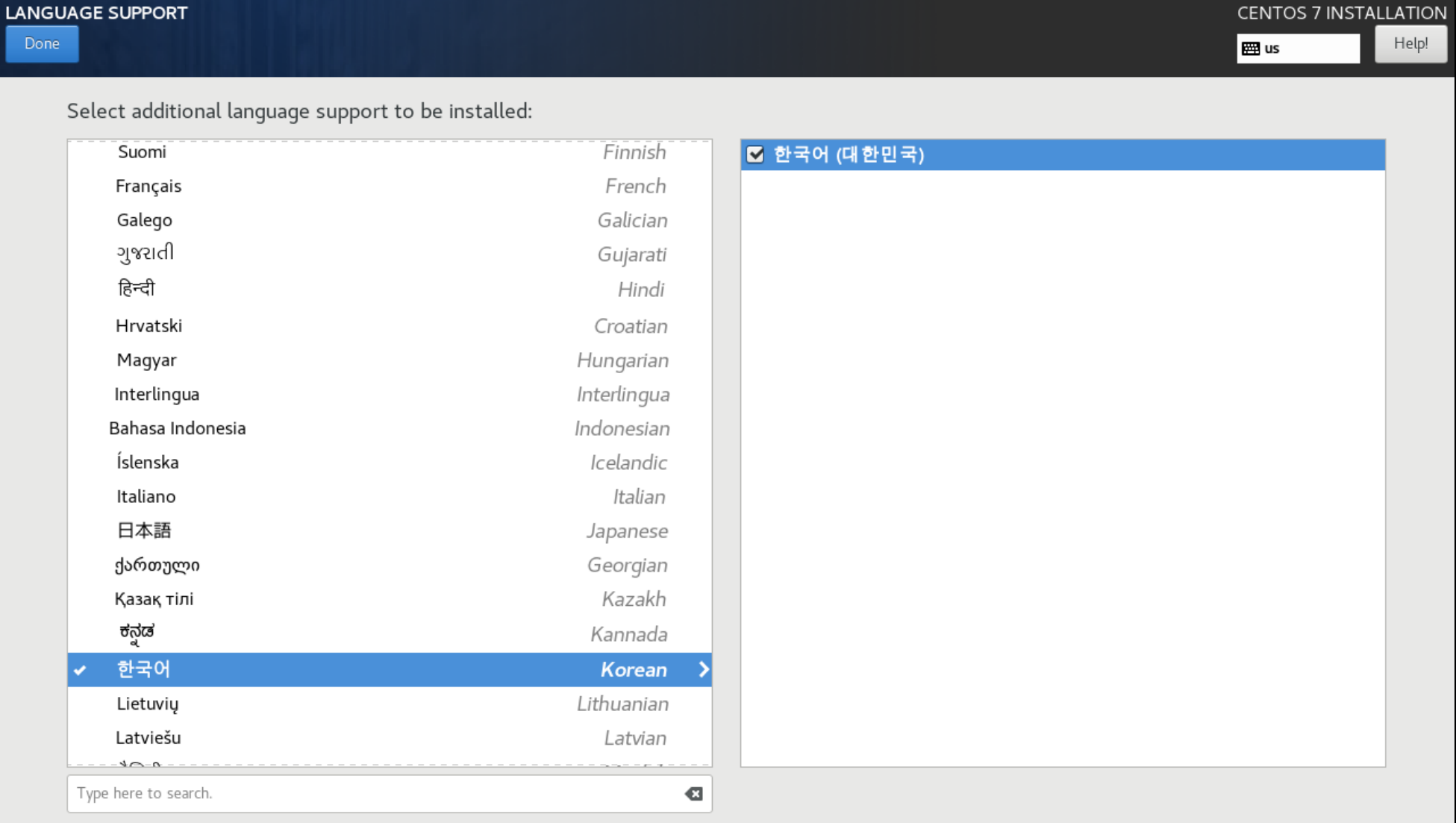이전에 한국어 설정을 하지 않아서 한글 언어 팩이 설치되지 않았지만,