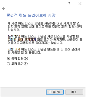 6. 동적 할당을 선택 후 다음으로 넘어가겠습니다.