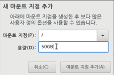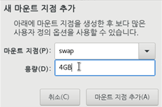 마운트 지점은 /와 swap을 추가하겠습니다.