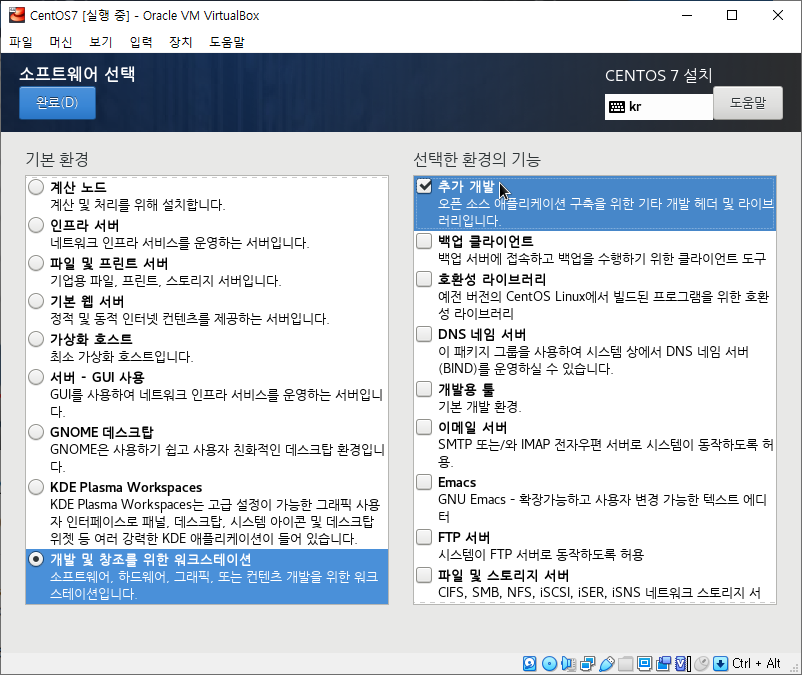 2. 원활한 실습을 위해 소프트웨어 선택을 클릭하여 개발 및 창조를 위한 워크스테이션을 클릭 후 추가 개발을 체크 하겠습니다.