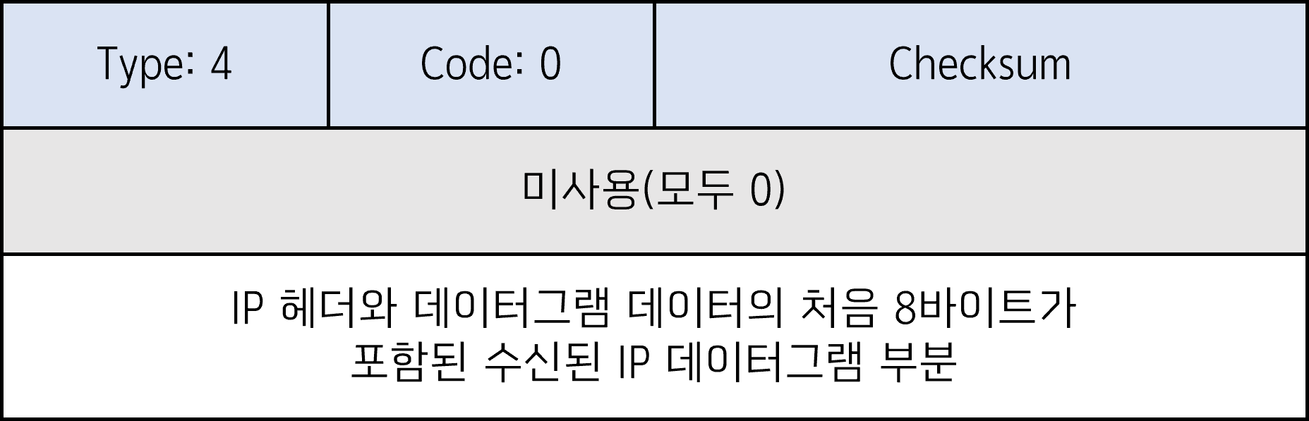 - 혼잡으로 인하여 데이터그램 폐기를 발신지에 알림