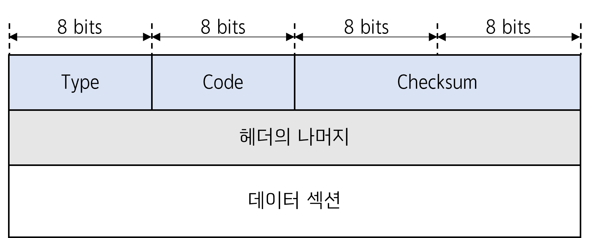 ICMP 메시지의 일반적인 형식은 아래 그림과 같다.