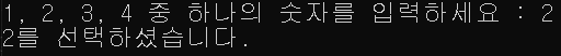 1, 2, 3, 4가 아닌 다른 값을 입력하면 case에 해당되는 조건이 없기 때문에 default가 실행됩니다.