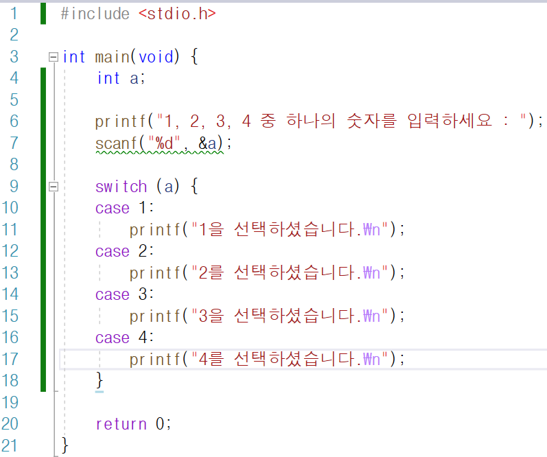 아래의 예시에서는 변수 a가 1일 경우, 2일 경우, 3일 경우, 4일 경우를 각각