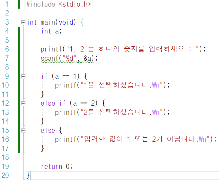printf("1을 선택하셨습니다.\n"); 문장이 먼저 실행되고,