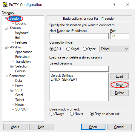 세션 이름은 LINUX_SERVER1로 해주었습니다.