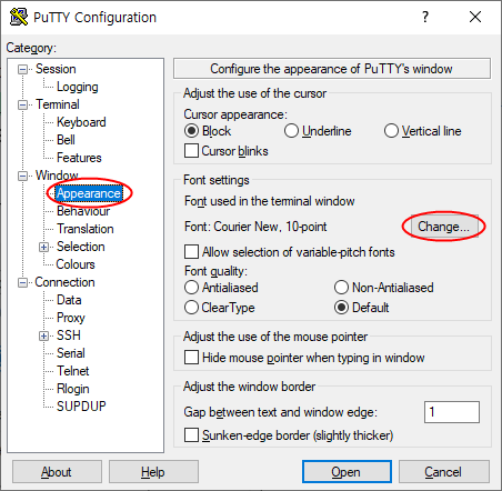 Window 카테고리의 Apperance, Font settings에서 Change 클릭.