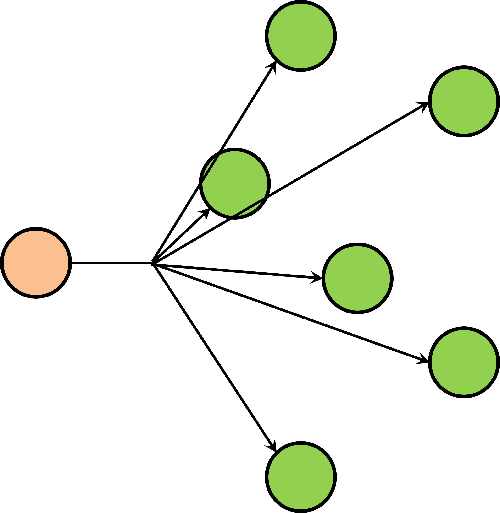 - Ex) 강의실의 전체 사람들에게 메시지를 전달하는 경우