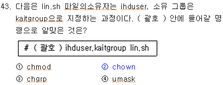 chown : 파일이나 디렉터리의 소유자를 변경하는 명령어 chgrp : 파일이나 디렉터리의 소유그룹을 변경하는 명령어 < 혼동 주의 > chown으로도 . 이나 : 을 사용하면 소유자 및 소유그룹까지 변경이 가능. chgrp는 소유 그룹만 변경 가능 |
